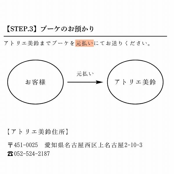 アトリエ美鈴までブーケを元払いにてお送りください。