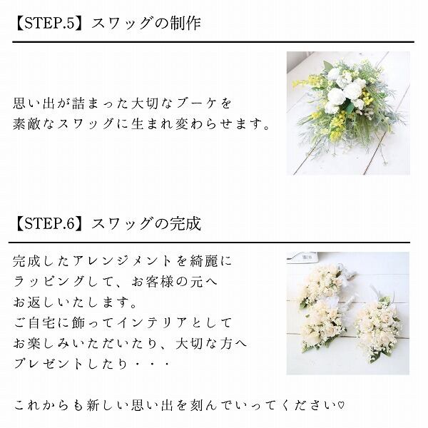 ※お客様のブーケの花材、スワッグのサイズ・ボリュームなどにより