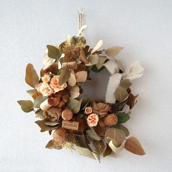 主な素材:ユーカリ バラ コットンフラワー コルク リボン など