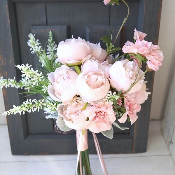 ペールピンクのピオニーブーケ 造花 前撮り 結婚式 フォトウェディング 424