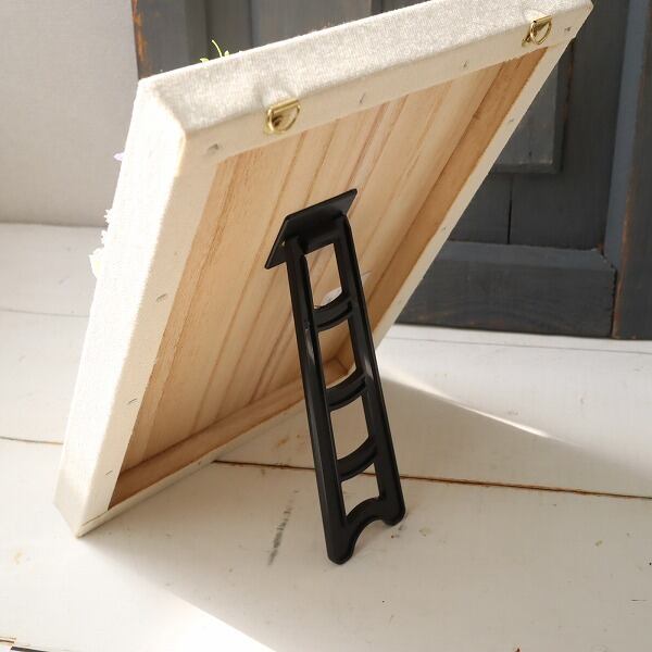 背面には壁掛け用の金具が付いているほか、自立できるスタンドも付属しているため、飾る場所を選びません。