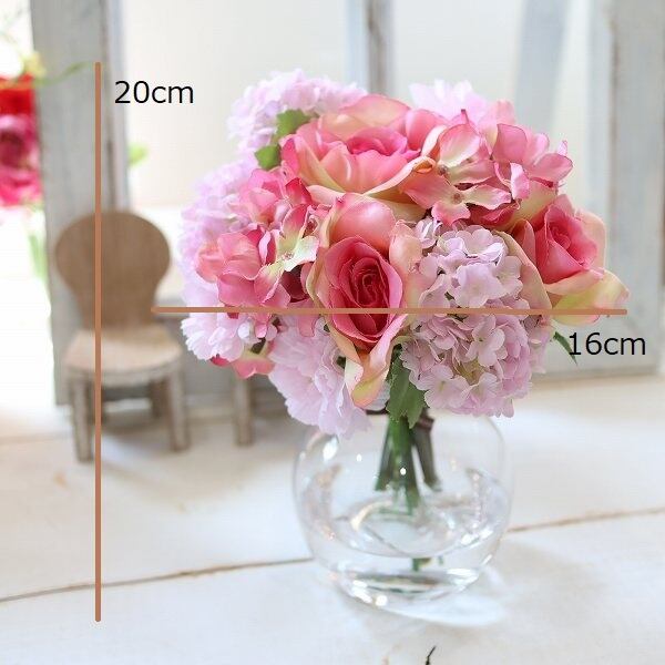 高さ・・・ガラス花器底面からトップの花まで 約20センチ前後