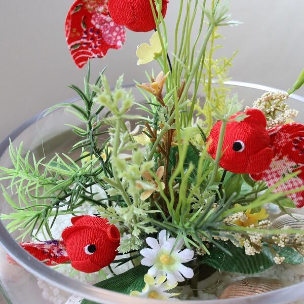 夏にぴったりな、ちりめん金魚のアレンジ!