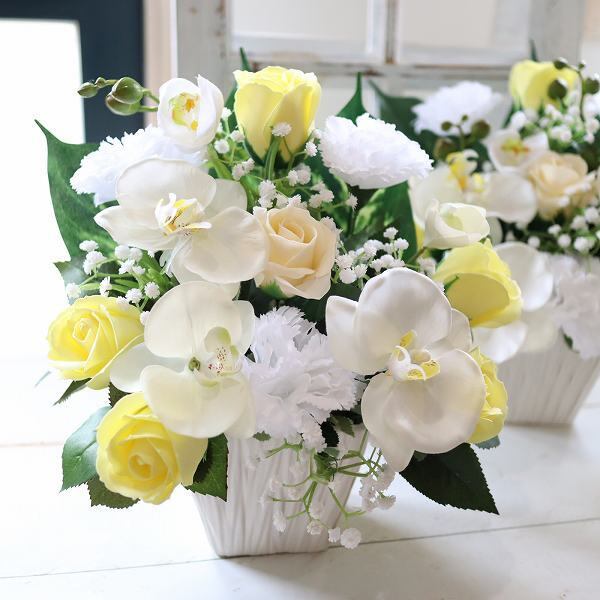 お気軽に飾れる造花フラワーアレンジメントが人気です。