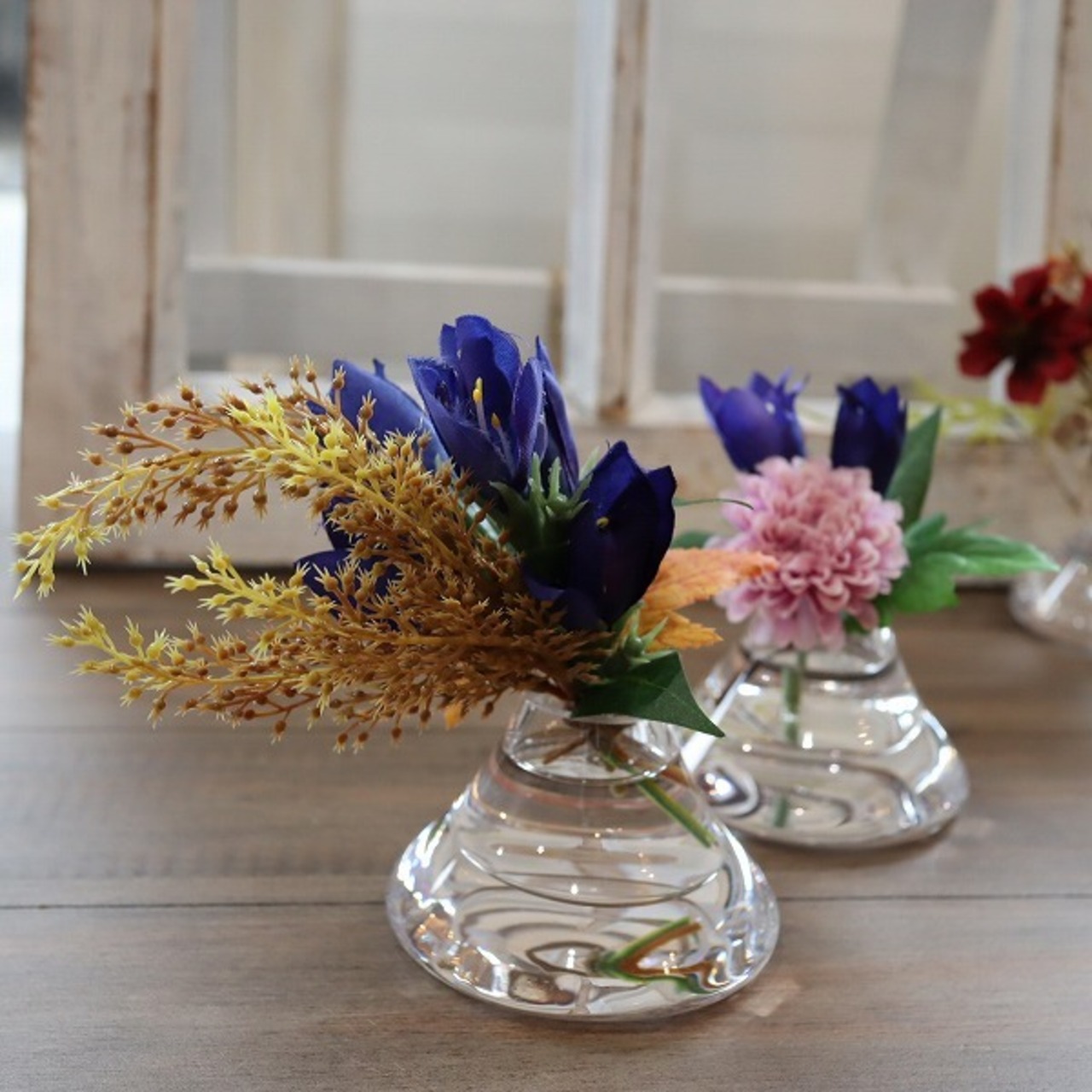 少し背の高い富士山型の花器にシンプルにアレンジしました。