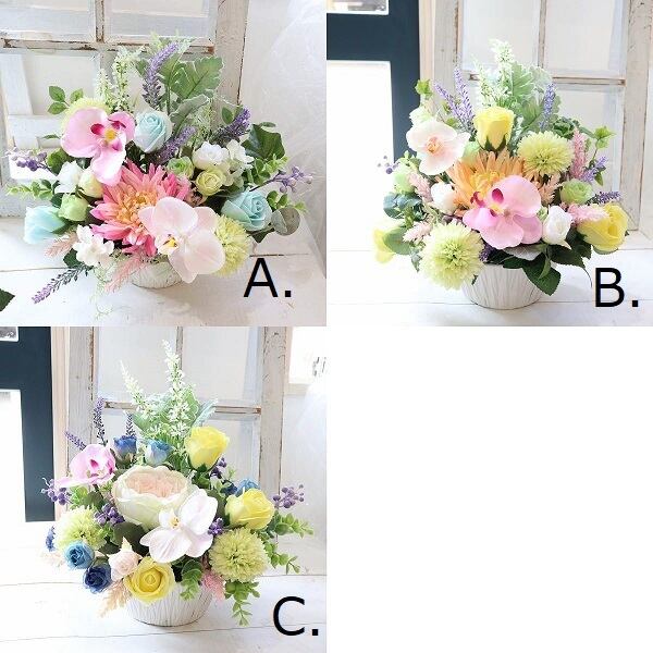 お気軽に飾れる造花フラワーアレンジメントが人気です。