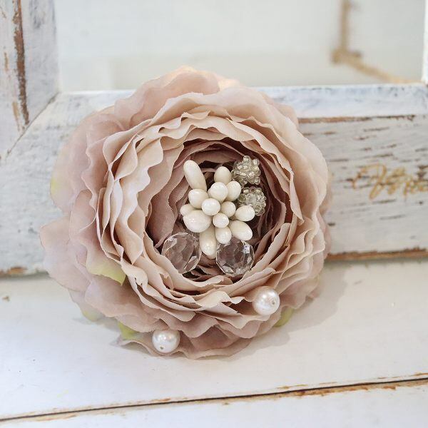 ビジューやパールなど上質な素材を使用したコサージュです。