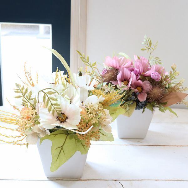 お気軽に飾れる造花フラワーアレンジメントが人気です。
