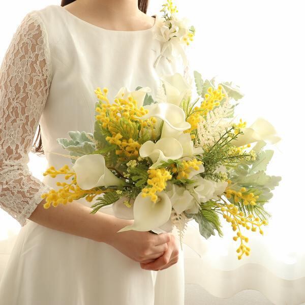 使用花材:ミモザ カラー 紫陽花 アスパラガス シロタエギク など