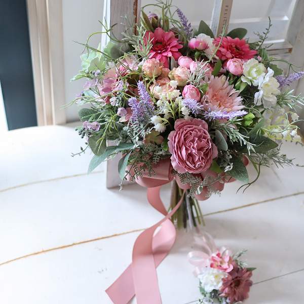 全ての花材はアーティフィシャルフラワーを使用しておりますので、