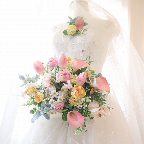 全ての花材はアーティフィシャルフラワーを使用しておりますので、