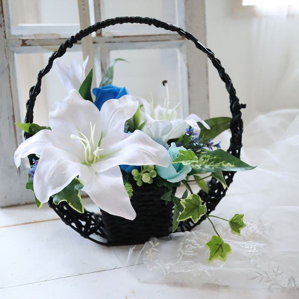 上質なアーティフィシャルフラワーとソープフラワーでアレンジされています。