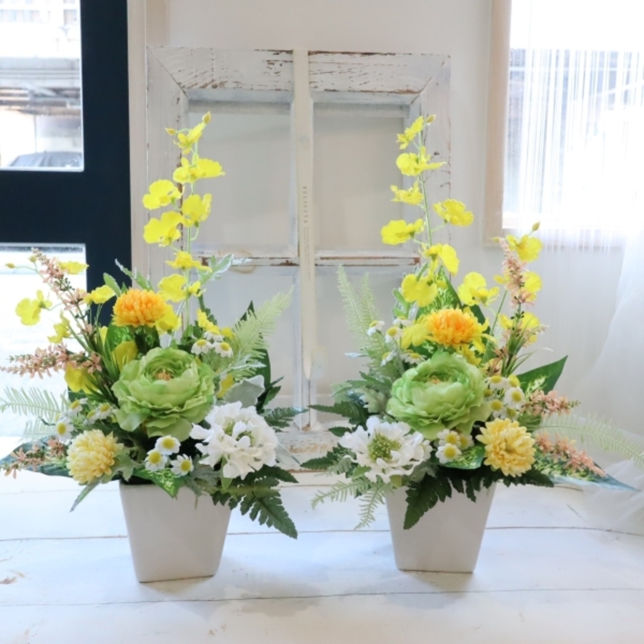上質なアーティフィシャルフラワーでアレンジされています。