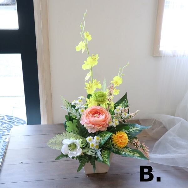 お気軽に飾れる造花フラワーアレンジメントが人気です。