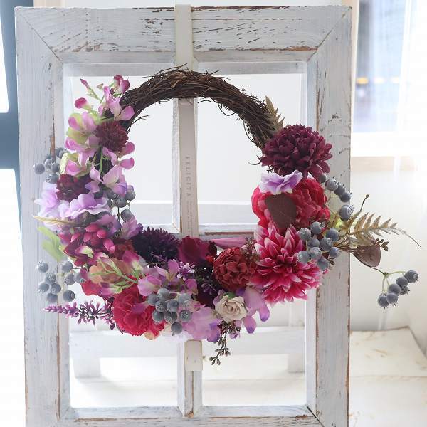 たっぷりのお花を贅沢に使用したパープルグラデのリースです。