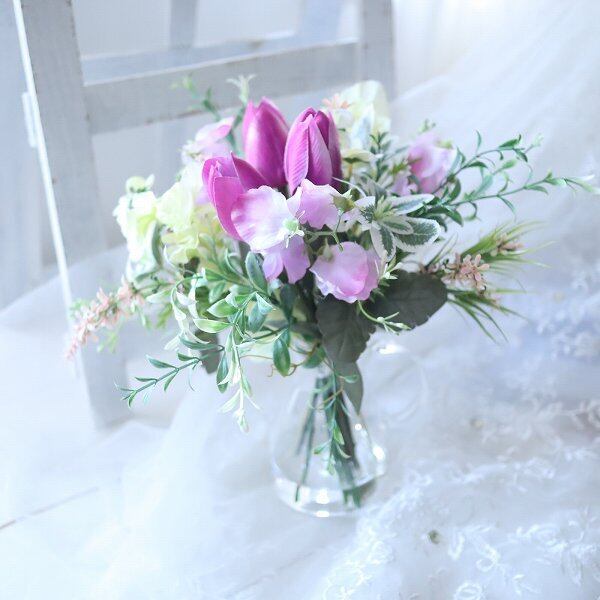 使用花材・・・ チューリップ スイートピー ラベンダー ビオラ その他