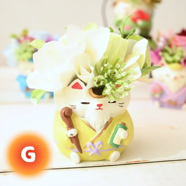 縁起の良さを感じさせる、ねこちゃん七福神のミニアレンジメント。